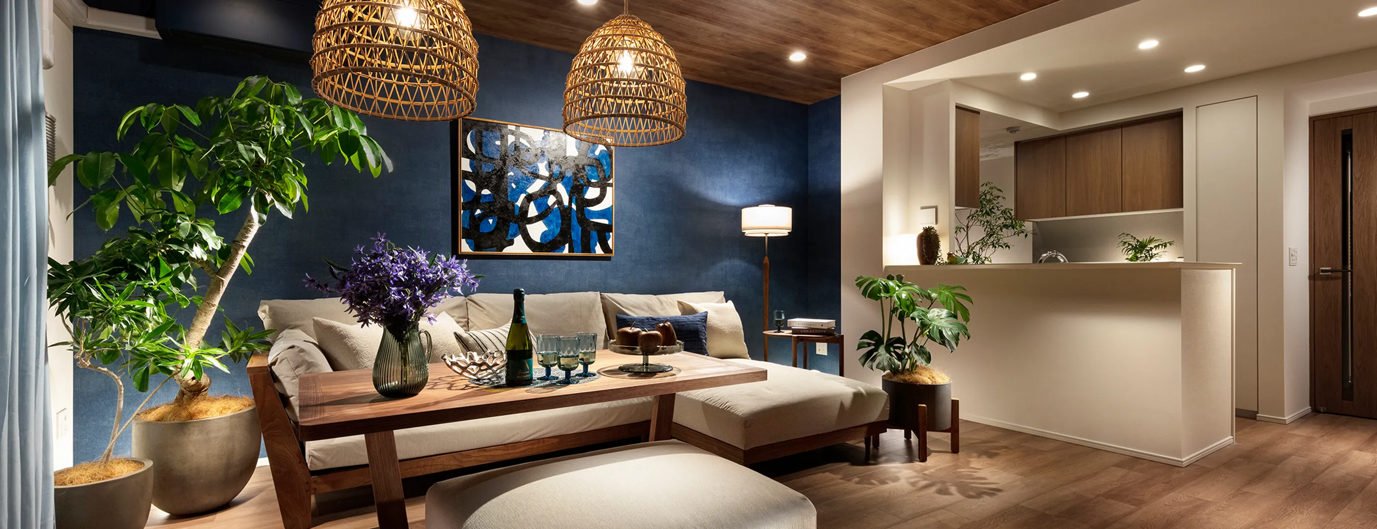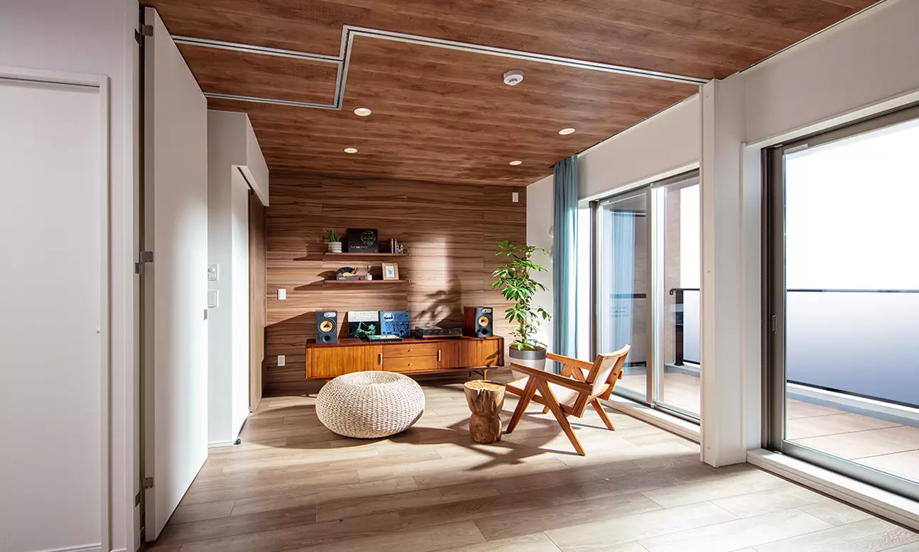 リビング・ダイニングと隣接する洋室との間仕切りにスライドドアを採用しました。ライフスタイルの変化に合わせて、空間を仕切って使うことができます。