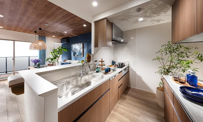家族が集うリビング・ダイニングを見渡すことができる対面キッチンを採用しました。